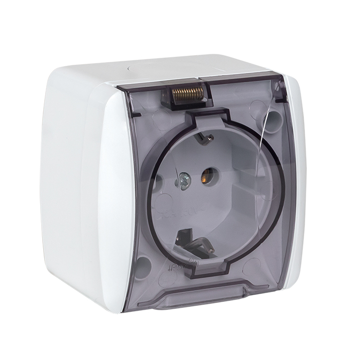 Розетка 1-местная 16А с заземлением с прозрачной крышкой Владивосток IP54 EKF