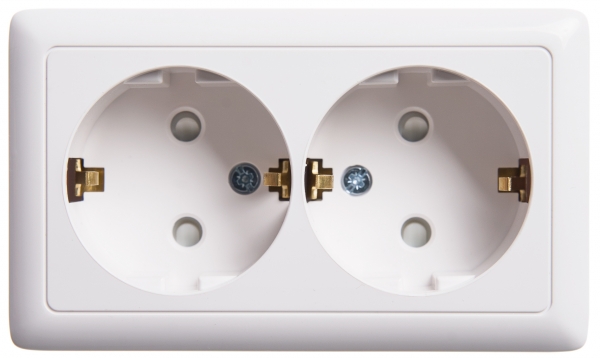 Розетка двойная ХИТ SE накладная с заземлением с изоляционной пластиной со шторками белая