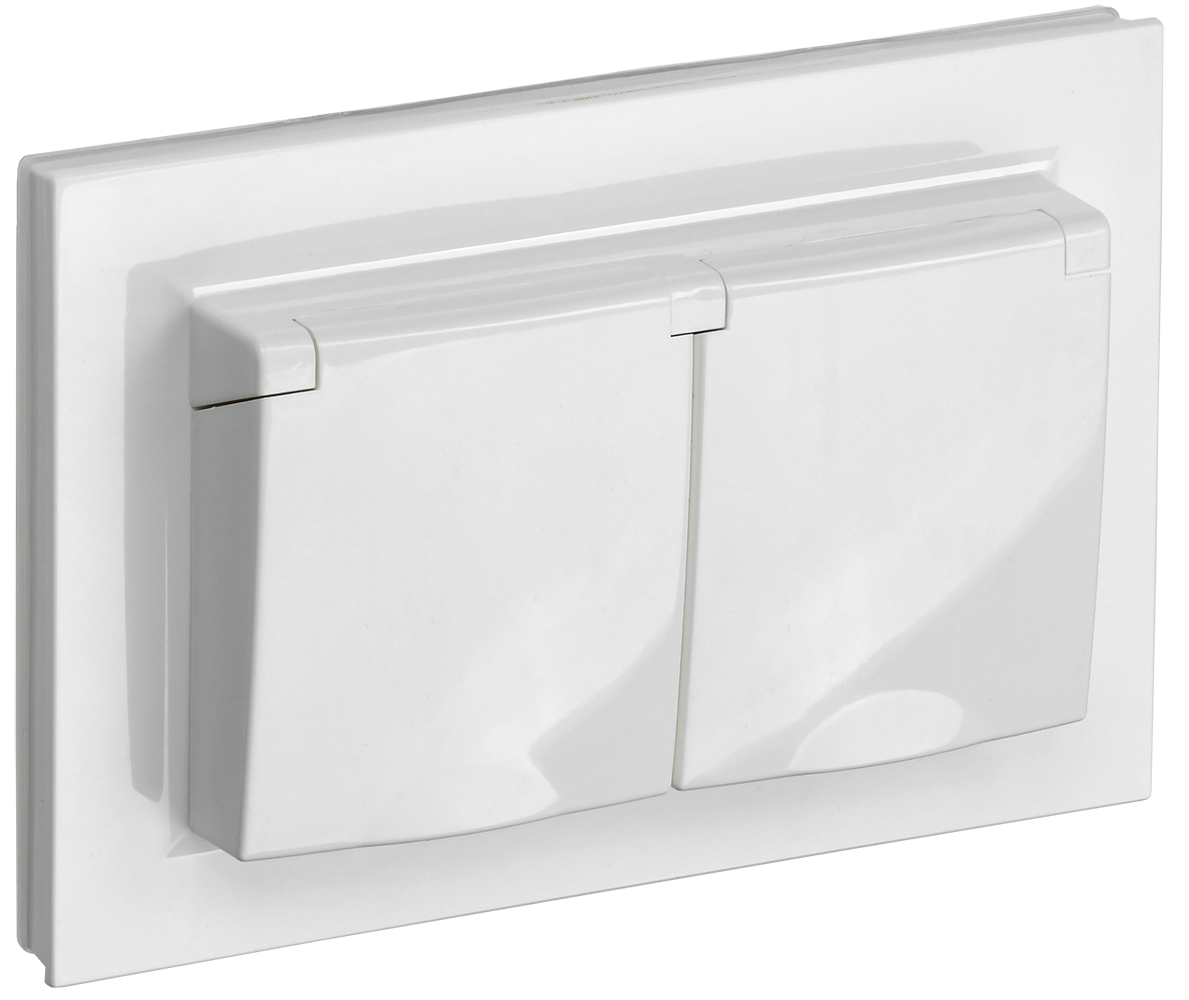 Розетка двойная с крышкой 16А IP44 BRITE IEK белая в сборе