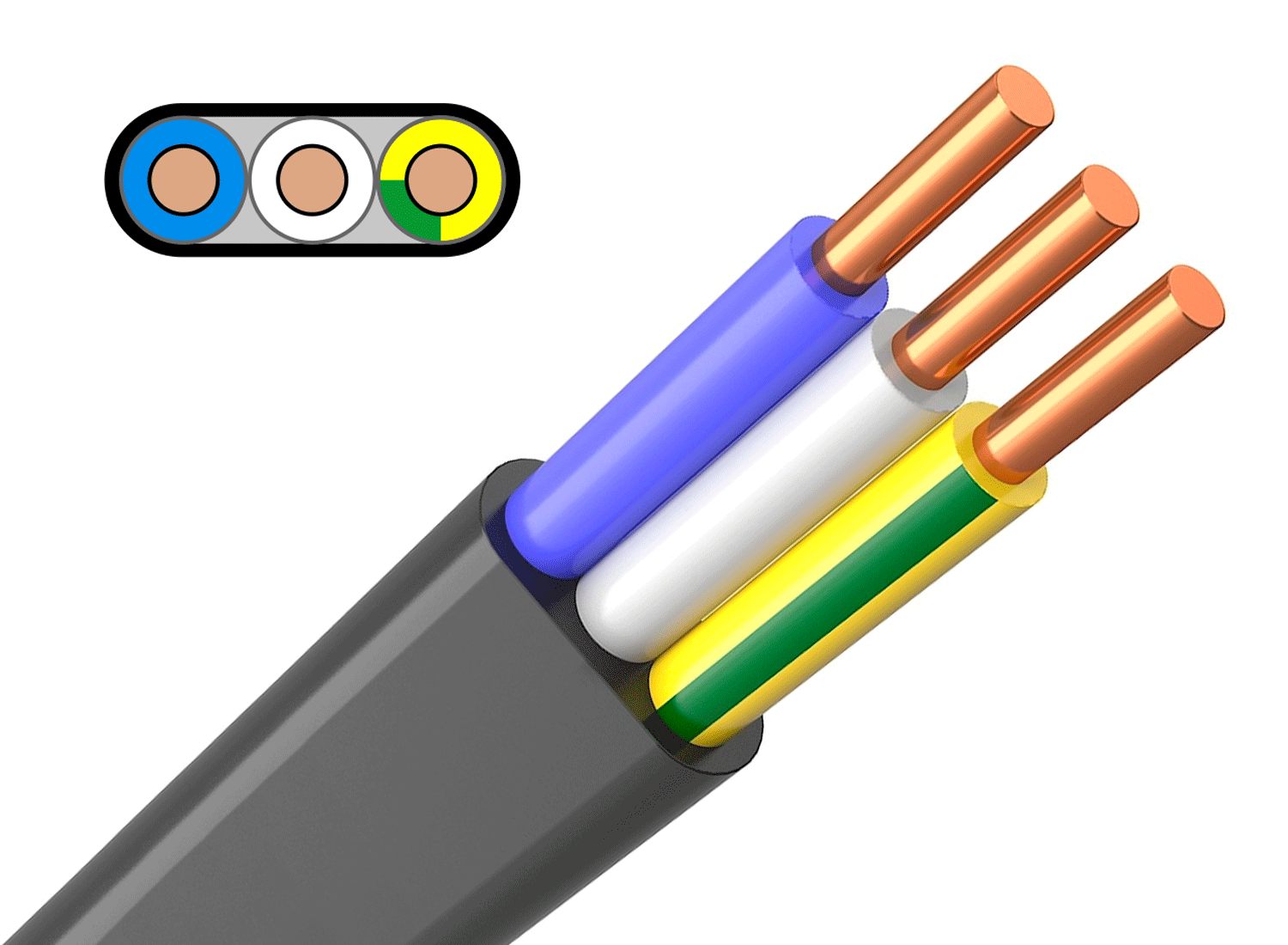- ПВХ-изоляция жил для удобства при монтаже производится в различном цветовом исполнении (фаза - серый, черный; синий - ноль; желто-зеленый - заземление);