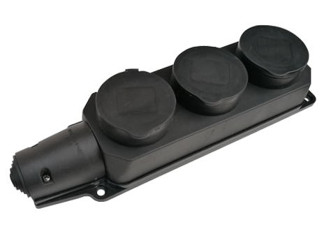 Розетка тройная с заземлением каучук с заглушками 16А IP44 черная 9323 IN HOME