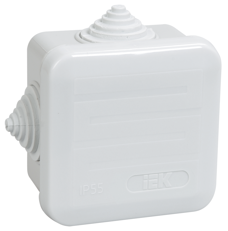 Коробка КМ41236 распаячная для открытой проводки 70х70х40 мм IP44 (RAL7035, 4 гермоввода, защелкивающаяся крышка)
