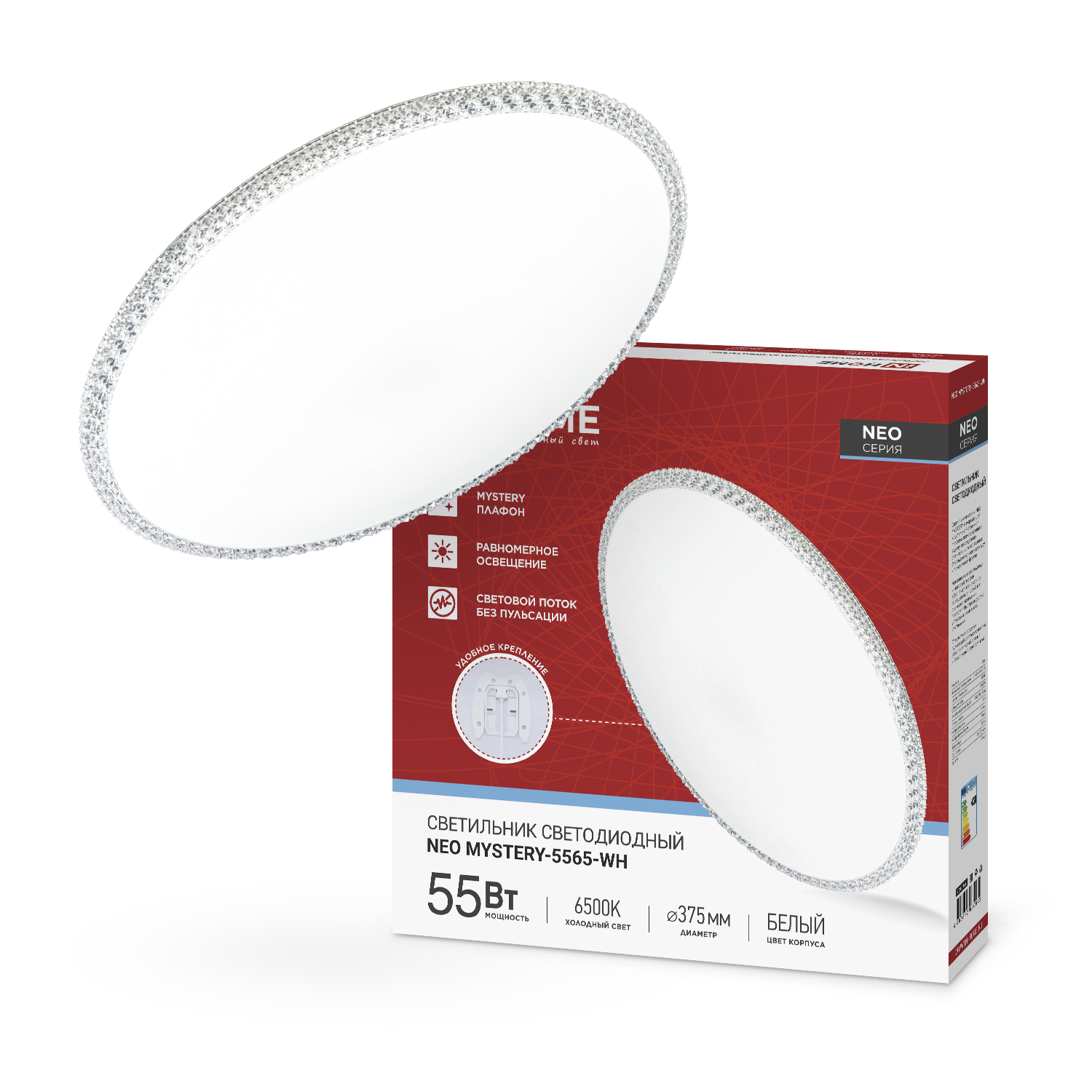 Светильник светодиодный NEO MYSTERY-5565-WH 55Вт 230В 6500K 4400Лм 375x60мм белый IN HOME