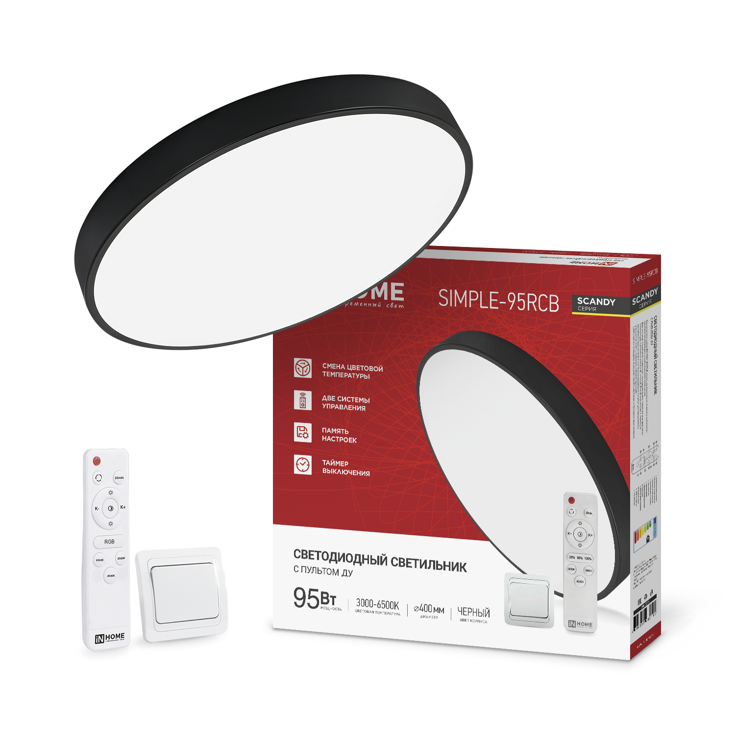 Светильник светодиодный SCANDY SIMPLE-95RCB 95Вт 230В 3000-6500K 7600Лм 400x50мм с пультом ДУ черный IN HOME