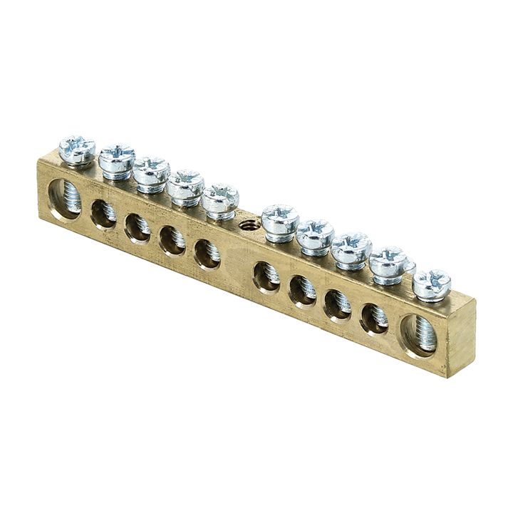 Шина PEN "ноль-земля" (8х12мм) 10 отверстий латунь крепеж по центру EKF PROxima