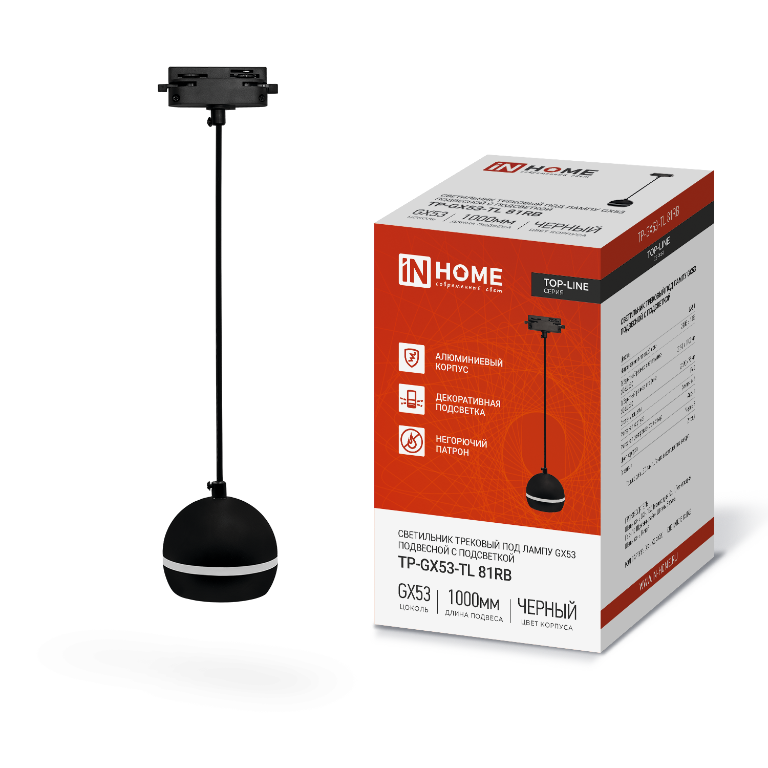 Светильник трековый подвесной TP-GX53-TL 81RB под лампу GX53 с подсветкой 70 мм, шнур 1м, черный IN HOME