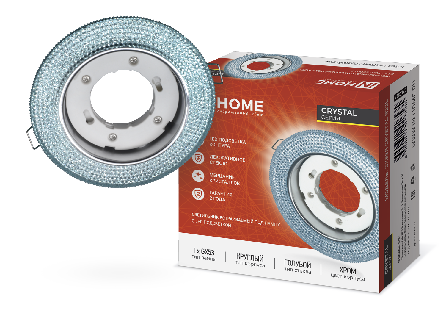 Светильник встраиваемый GX53R-crystal R22L с подсветкой 4К под лампу GX53 Голубой/Хром IN HOME