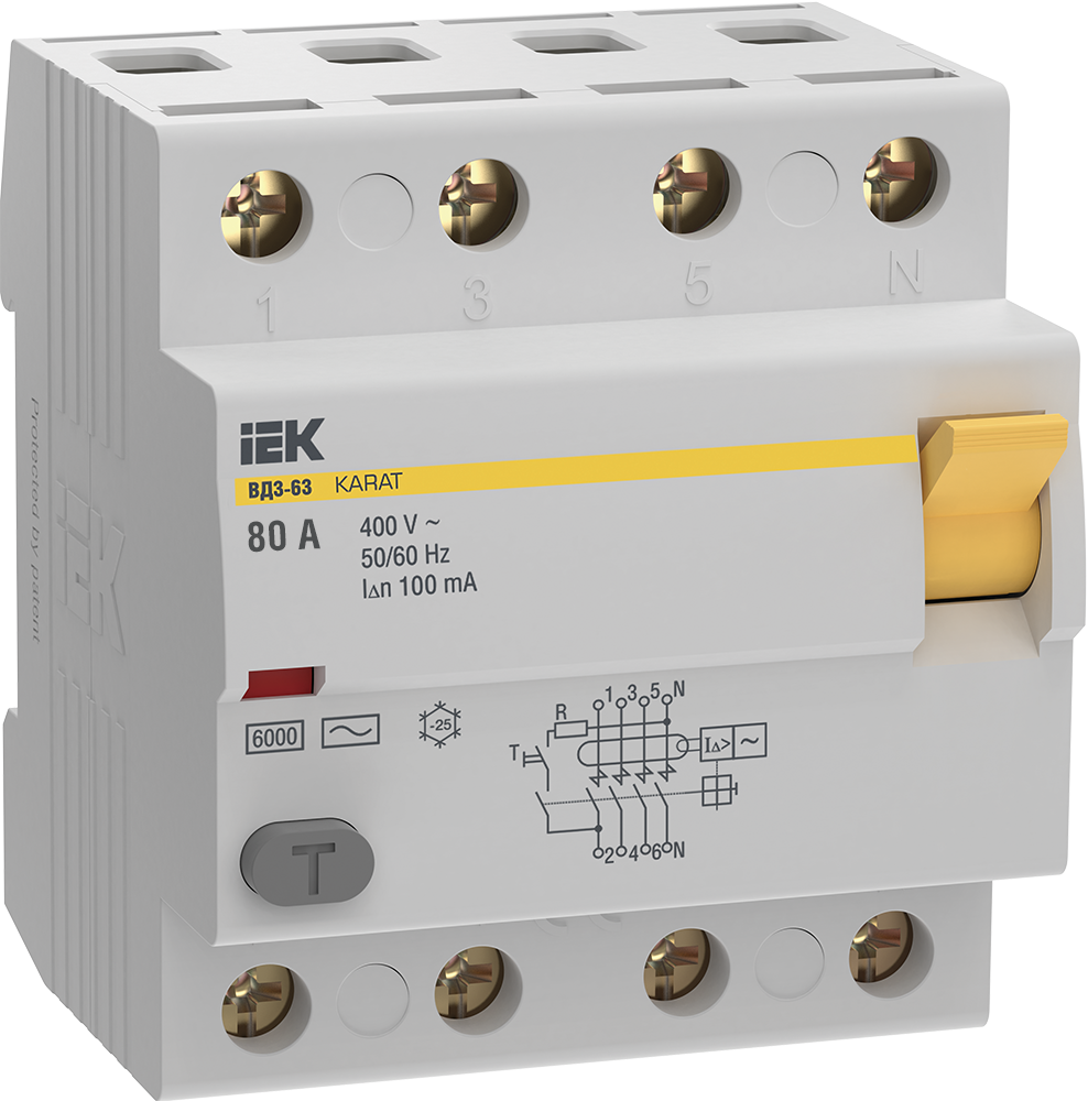 Устройство защитного отключения ВД3-63 4P 80А 100мА 6кА тип AC KARAT IEK