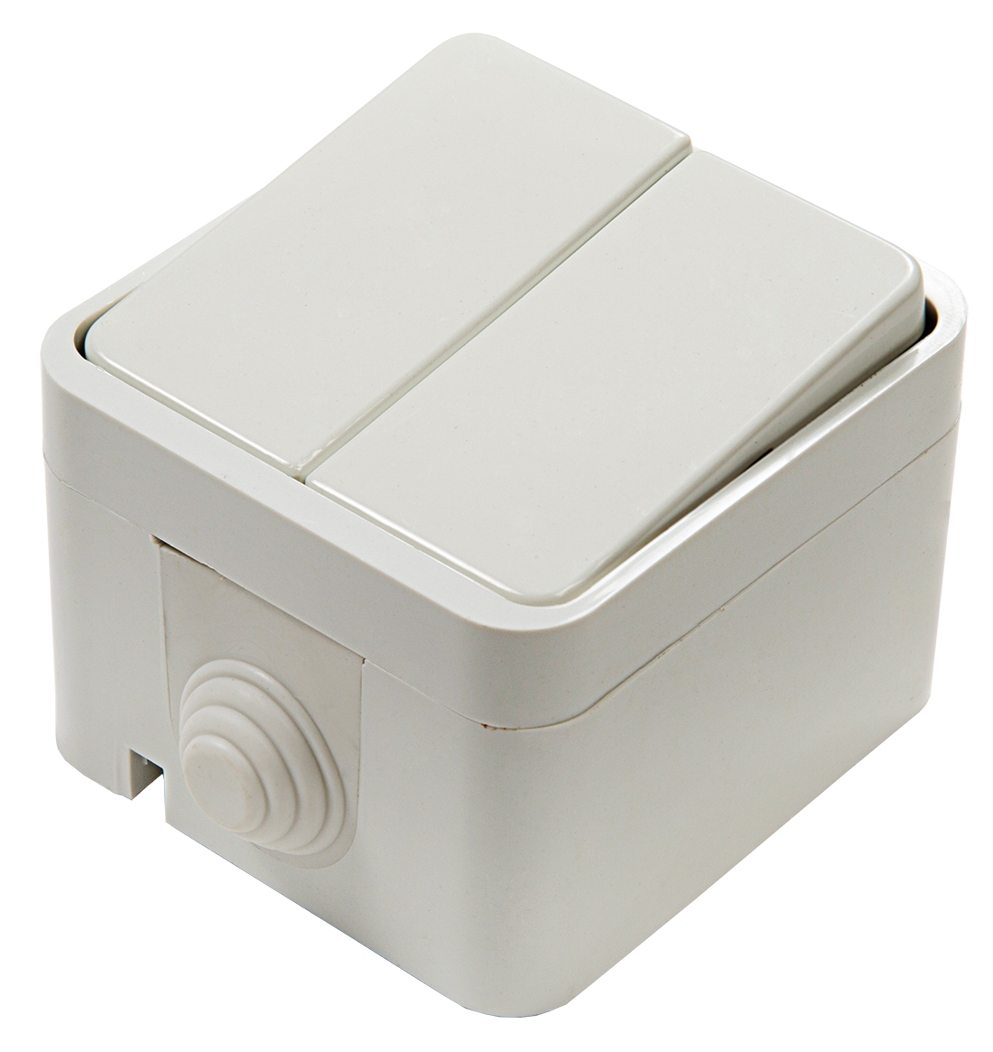 Выключатель двухклавишный AQUA белый полугерметичный 3200 IN HOME