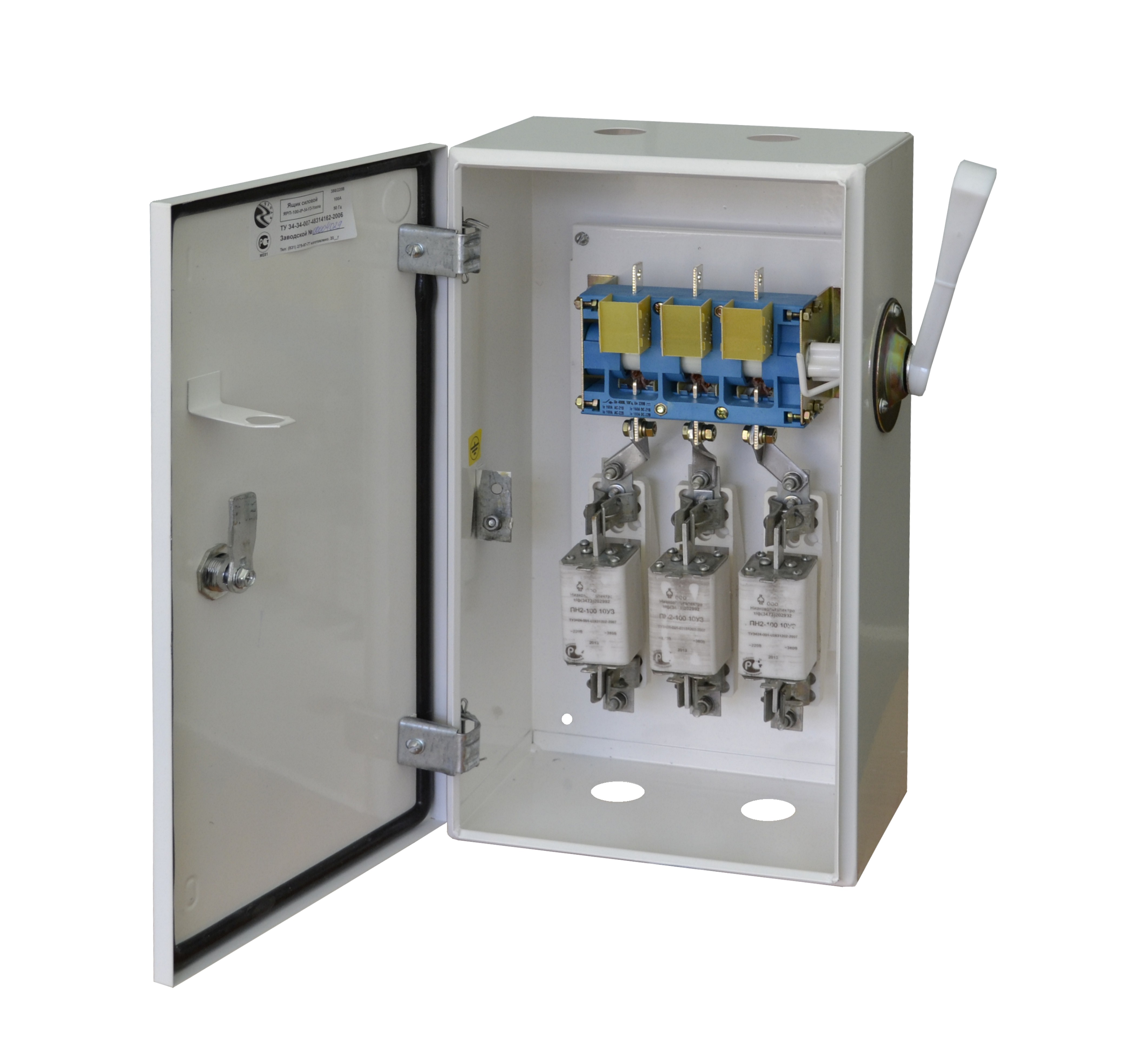 Имеется возможность блокировки дверки от открытия при включенном рубильнике.